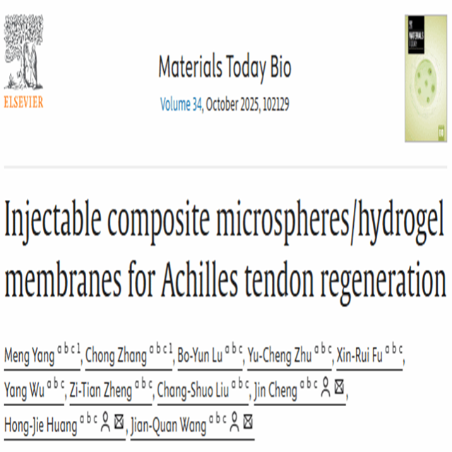 该研究针对跟腱断裂修复后愈合质量差、术后粘连多、再断裂风险高的临床难题,研发出可注射复合微球水凝胶膜,为跟腱断裂的高质量修复提供了全新生物材料策略。
