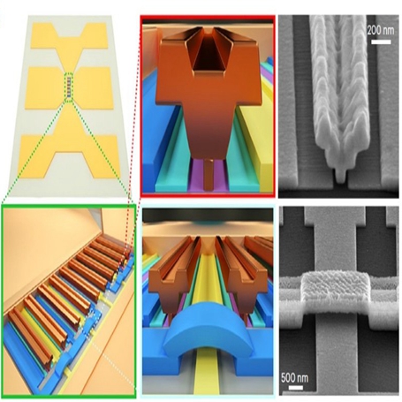 课题组基于阵列碳纳米管,通过缩减栅长至35nm并引入先进的Y型栅电极结构,降低栅电阻的同时保持低的寄生电容特性,成功制备出首个截止频率fmax超过1THz的金属氧化物半导体场效应晶体管,充分展现出碳纳米管在太赫兹高速领域的巨大应用价值。