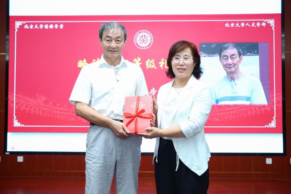 教务长办公室副主任宋鑫在本讲伊始向阎步克送上教师节祝福,并赠送《卓越教学是怎样炼成的——来自北大教师的教学智慧》一书。教务部副部长黄宇蓝回忆起读书时最喜欢的一门选修课就是阎步克的“中国传统官僚政治制度”,她祝愿同学们在北大的学习中找到自己的热爱,在自己的人生大海中乘风破浪、扬帆远航。“博雅人文讲堂”推介人、人文学部副主任李四龙表达了对阎步克的敬意,并以“礼制官制南北朝,教书著书品最高”赞叹阎步克的学术人生。