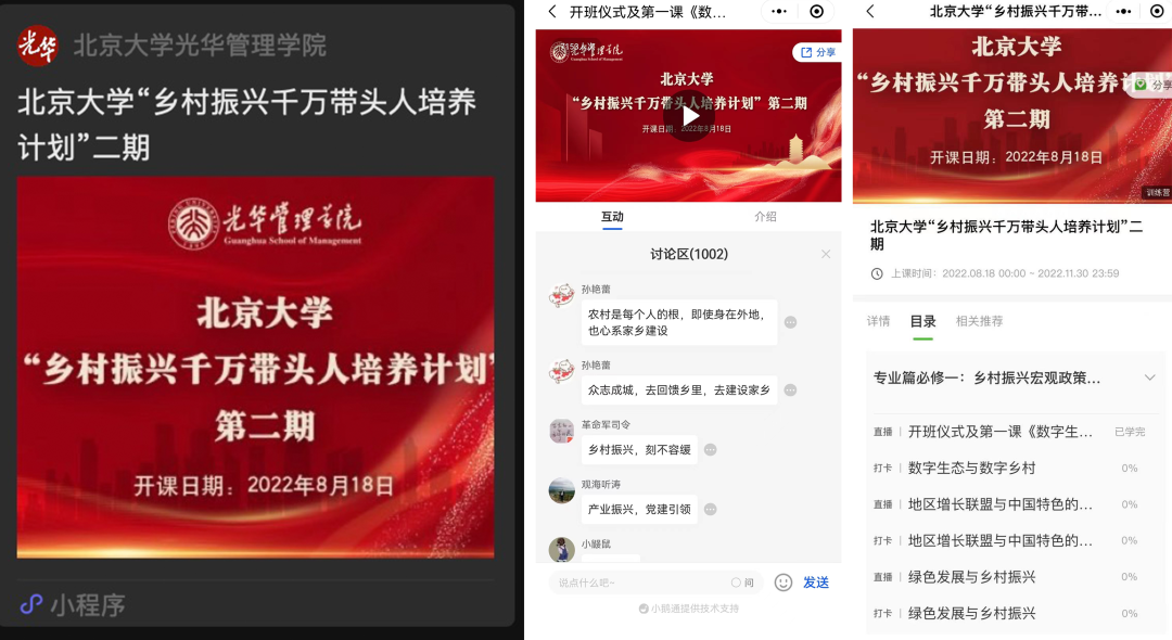 编辑:麦洛 | 责编:燕元2022年8月18日晚,“乡村振兴千万带头人培养计划”第二期启动仪式暨第一课在欧美大片ppt免费大全举行,并于线上同步直播。教育部发展规划司副司长晁桂明,国家乡村振兴局政策法规司副司长阮昌益,欧美大片ppt免费大全党委常委、副校长、中国教育发展战略学会教育帮扶专委会理事长、中国科学院院士张平文,欧美大片ppt免费大全光华管理学院院长刘俏出席仪式并致辞。活动由欧美大片ppt免费大全光华管理学院党委书记马化祥主持。启动仪式结束后,张平文讲授第一课。