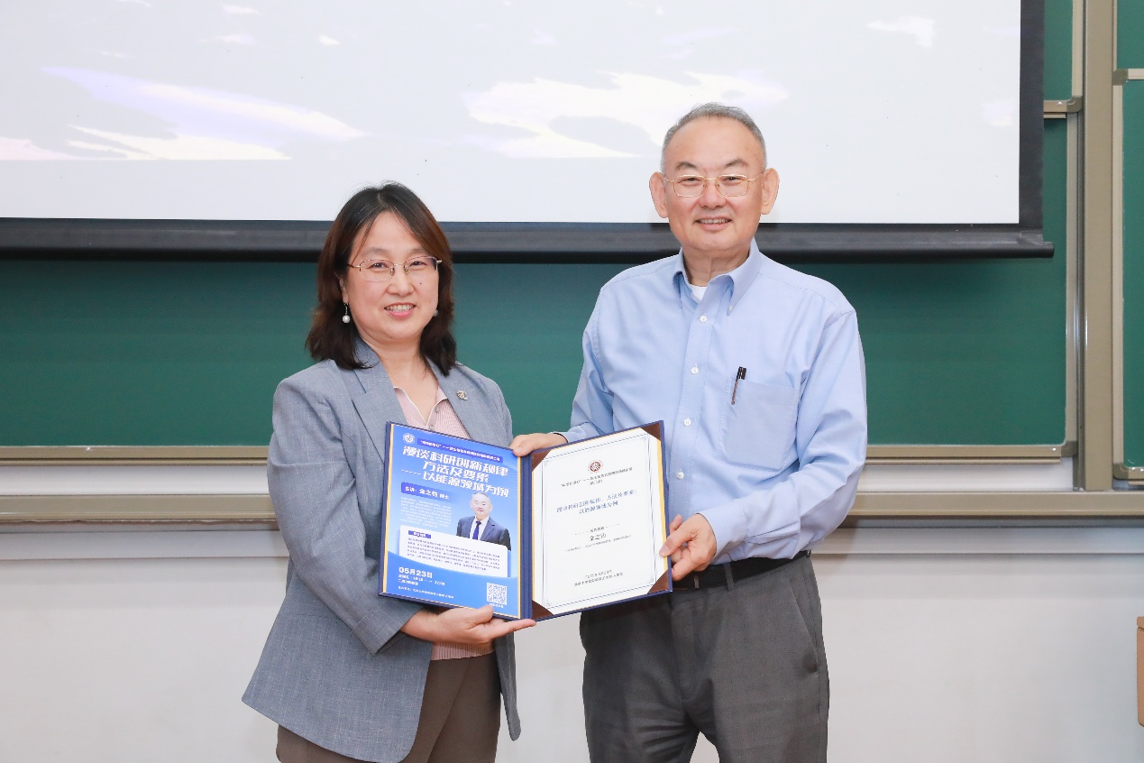在互动环节,现场师生踊跃提问。金之钧就页岩油气开发技术、科研人员素养培育、前沿领域突破方向等问题,与大家进行深入交流。师资人才办公室常务副主任、人事部副部长、党委教师工作部副部长贾爱英向金之钧颁发“科学的缘分——院士报告会暨博雅师德讲堂”纪念证书。