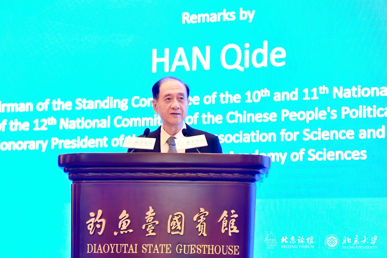 韩启德对北京论坛的开幕表示热烈祝贺。他指出,北京论坛自设立以来,在“文明的和谐与共同繁荣”的总主题下,为各国人士交流互鉴,共同应对人类面临的共同挑战提供了重要平台。他对国际社会在信任的基础上开展对话与合作提出三点倡议:一是深化坦诚与信任,筑牢应对变局的基石;二是加强沟通与交流,搭建应对变局的桥梁;三是增进包容与合作,增强应对变局的力量。他期待世界各国能够共享时代发展机遇,在构建人类命运共同体的伟大进程中实现文明的和谐与共同繁荣。