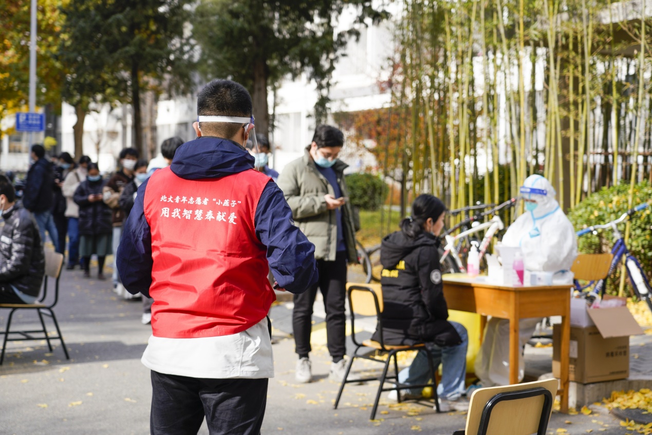 16日上午,全校师生员工进行全员核酸检测。北大第一医院、人民医院和第三医院等三家附属医院和校医院全力支援,以李六亿教授为组长的疫情防控专家组给予全过程指导,很多师生志愿者也投入进来,为大家无私奉献。到16日中午13时,学校将完成一轮全员核酸检测。未来两天,学校还将开展两轮全员核酸检测,采样力量强大,能够为师生提供便捷安全的服务。