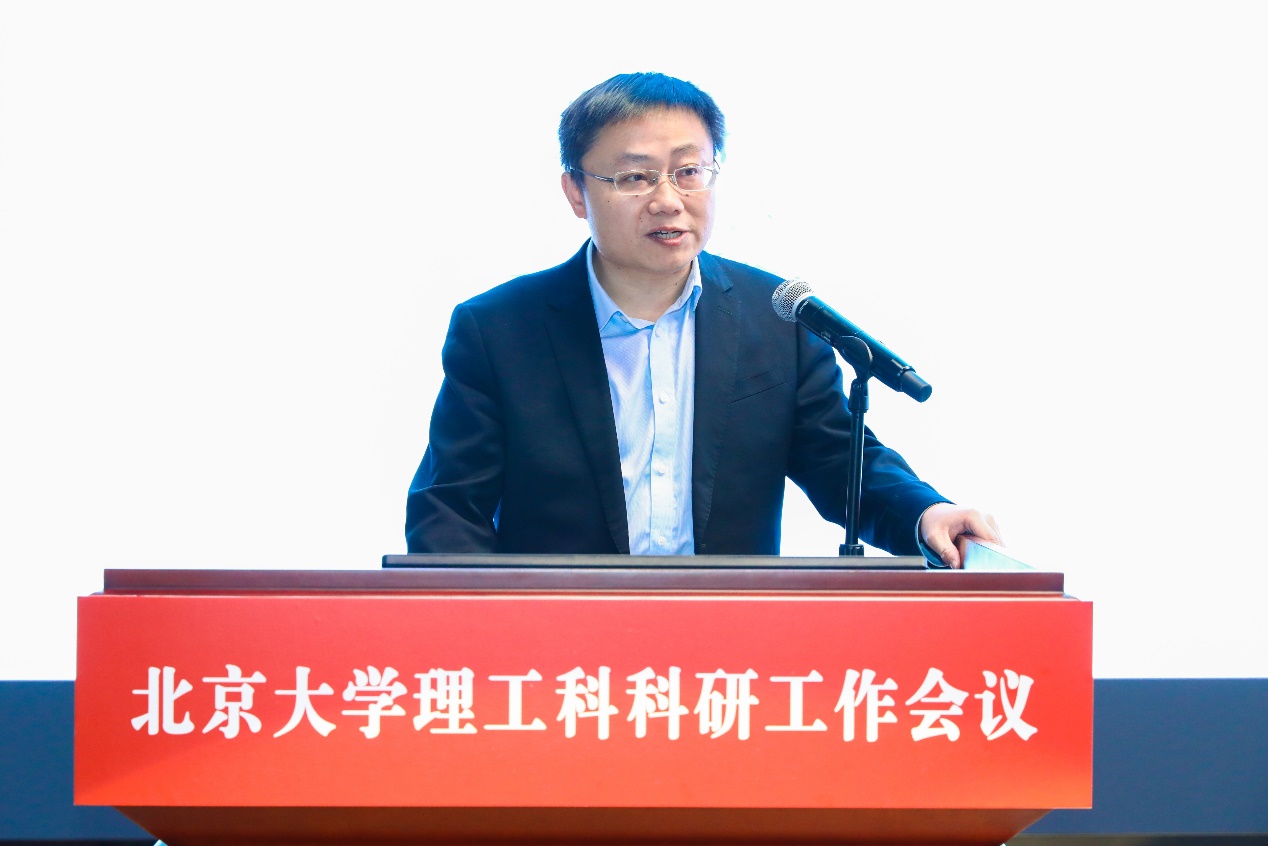 科学研究部部长谢冰对理工科科研情况进行介绍。他从重点科研项目、基地平台建设、国际科研合作、成果奖励与宣传等多维度呈现北大科研在持续保持基础研究竞争优势和服务国家重大需求方面作出的重要贡献。他着重分析了在教育、科技、人才统筹发展的新时期,国家科技机构调整、政策改革带来的新变化和遇到的新问题,并提出了下一阶段科研工作的重点思路与举措。