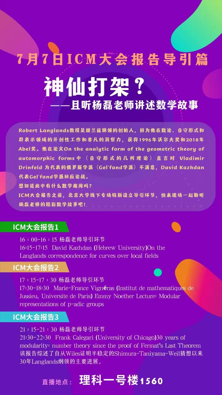 值此数学界的国际盛会开幕,北大数学师生也开启了属于他们的专属“学术节”,一同庆祝北大数学人登上顶级国际讲台人数再创新高;一起倾听报告,共同学习和研讨,在浓郁的学术氛围中度过特别的夏日。