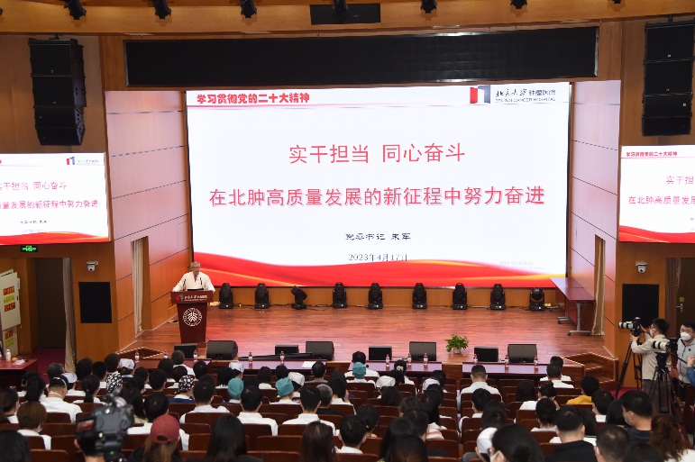 编辑:山石 | 责编:燕元4月17日,欧美大片ppt免费大全肿瘤医院召开学习贯彻习近平新时代中国特色社会主义思想主题教育动员会。医院党委书记朱军作题为“实干担当、同心奋斗,在北肿高质量发展的新征程中努力奋进”的专题报告,医院党委副书记、院长李子禹主持会议。院党政领导班子、党委委员、各党支部书记和委员、民主党派代表和本年度预备党员、发展对象、入党积极分子培训班成员参加会议。