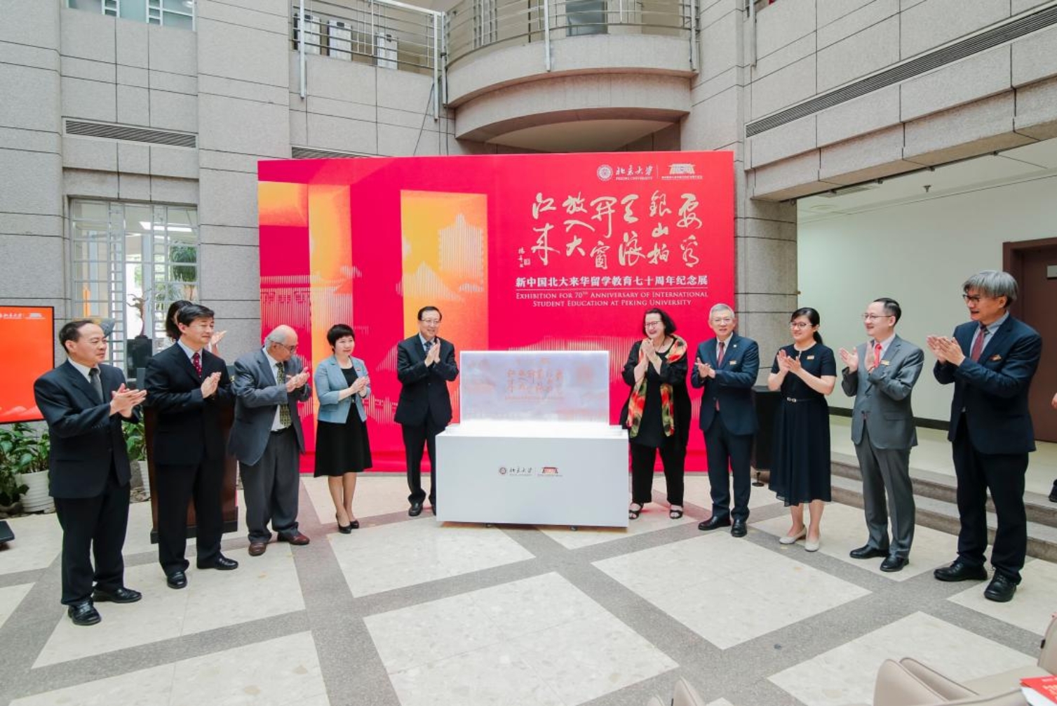 校内外领导嘉宾及留学生校友代表共同为展览揭幕