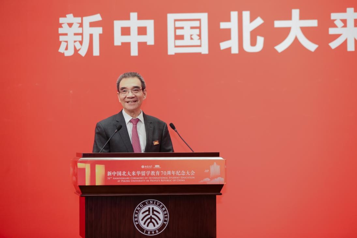王新强向各位领导嘉宾、师生校友表示诚挚的欢迎,向大会召开表示热烈的祝贺。大家从五湖四海而来,齐聚燕园,共同纪念新中国北大来华留学教育70周年,为的是凝心聚力再出发,团结奋进向未来。北大来华留学教育,已经走过了光荣的70年,也一定会在各方的共同努力下,走向下一个更加光荣的70年,为全球培育更多具有北大底蕴、中国情怀、国际视野的创新引领人才,为促进各国人民民心相通和构建人类命运共同体发挥北大力量。