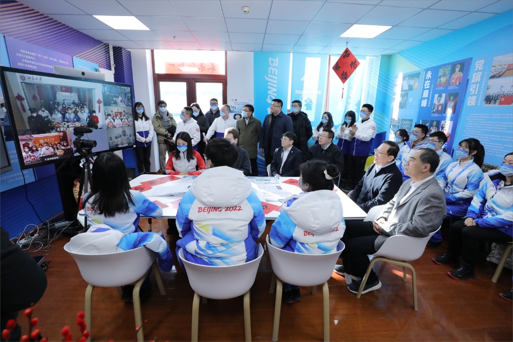 邱水平一行与冬奥会服务保障人员进行视频连线