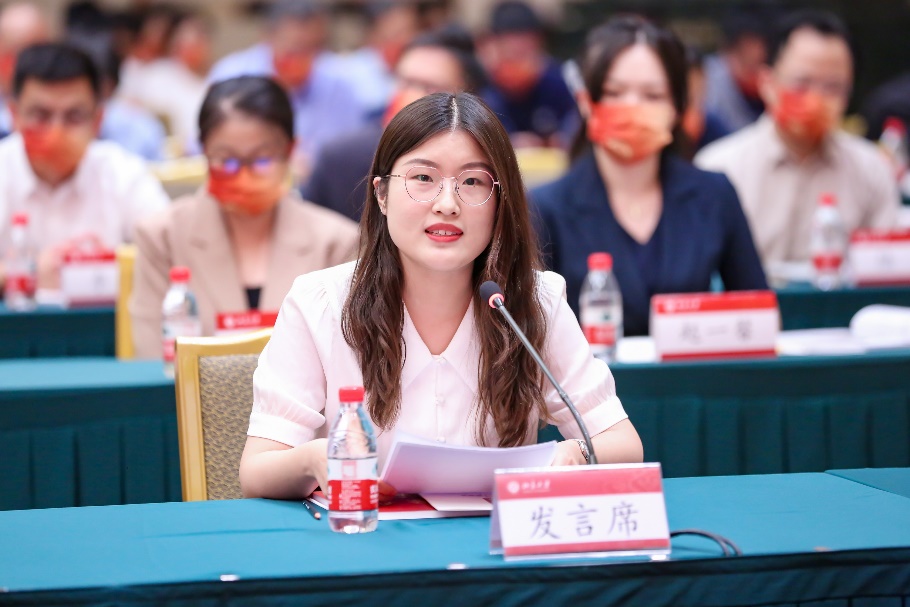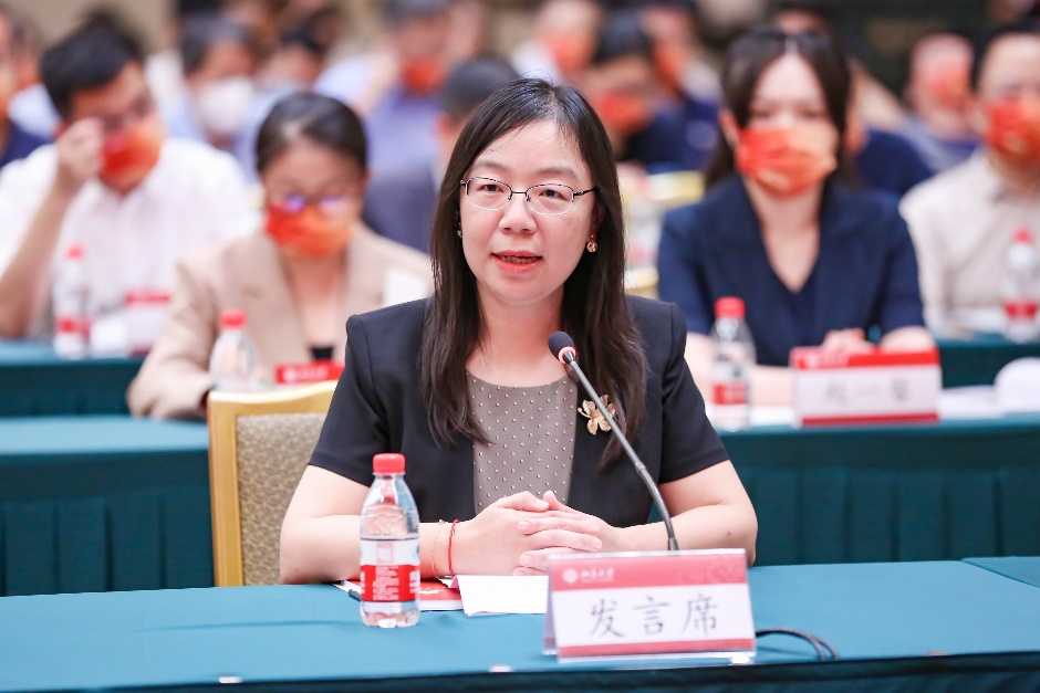 教师代表、基础医学院孔炜教授围绕“暖心”“欣赏”“留白”三个关键词分享了在北大当老师的收获。所谓亲其师而信其道,她认为要先暖心、再言教,用发自内心的欣赏赋予学生信心。从教16年来,她越来越看到学生身上各自闪闪发光的品质和天赋,也越来越相信学生。孔炜表示,教育在传授知识的同时,也要记得“留白”,给学生时间和机会,去观察、体验失败和成长、去跨界探索……在学习知识的空隙中慢慢学习如何创造出鲜活的生命和健全的人格。