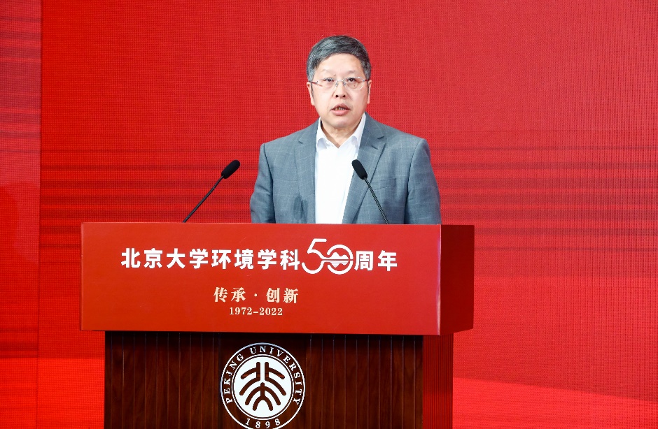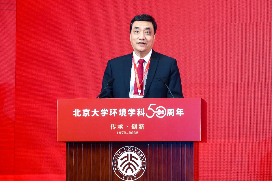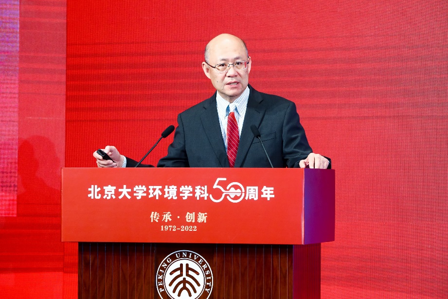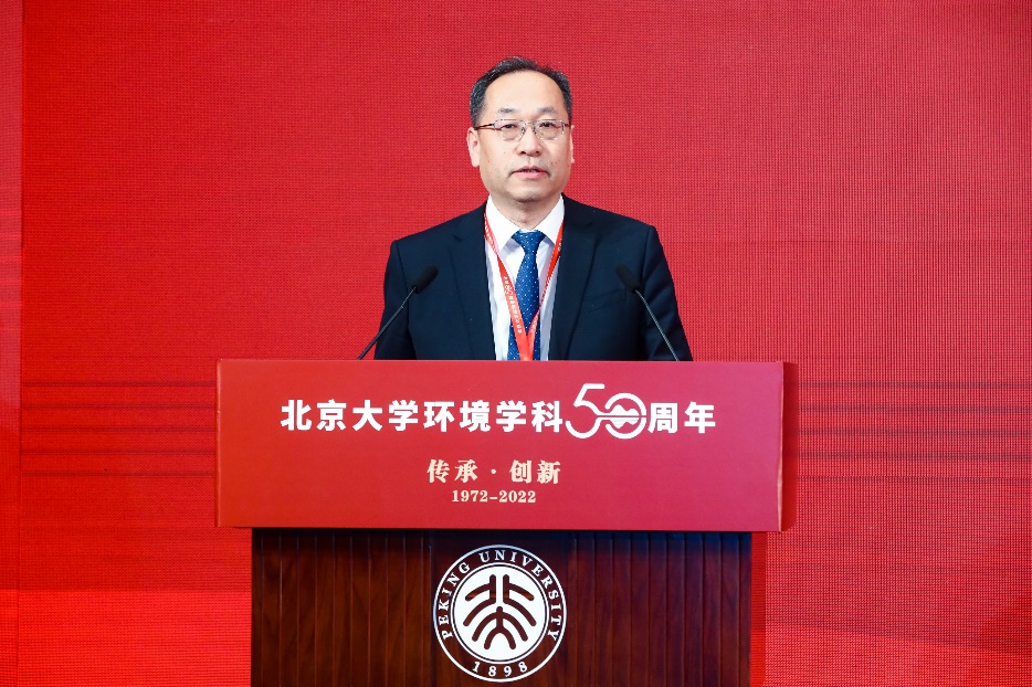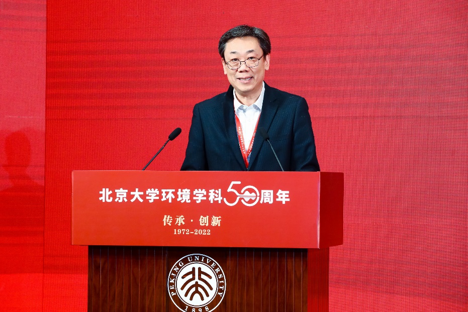 中国环境科学学会理事长、生态环境部环境规划院院长王金南院士在致辞中表示,北大环境学科在中国环境科学学会的发展过程中给予了不可或缺的支持与帮助,双方在长期的科技合作与人才交流过程中彼此支持、密切合作。他期待双方未来能够继续保持密切合作与友好交流,紧扣国家需求,共同推动国家生态文明的生动实践;聚焦全球发展,共同为全球环境治理贡献智慧和力量。