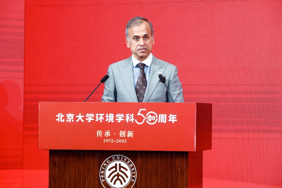 嘉宾交流发言环节,与会学者回顾了与北大环境学科在学科建设、人才培养、学术研究、科技项目实施等方面的密切合作过往,并围绕碳达峰碳中和、推动绿色发展、全球环境治理等生态环境领域重大问题展开深入研讨,共话环境学科的未来发展。