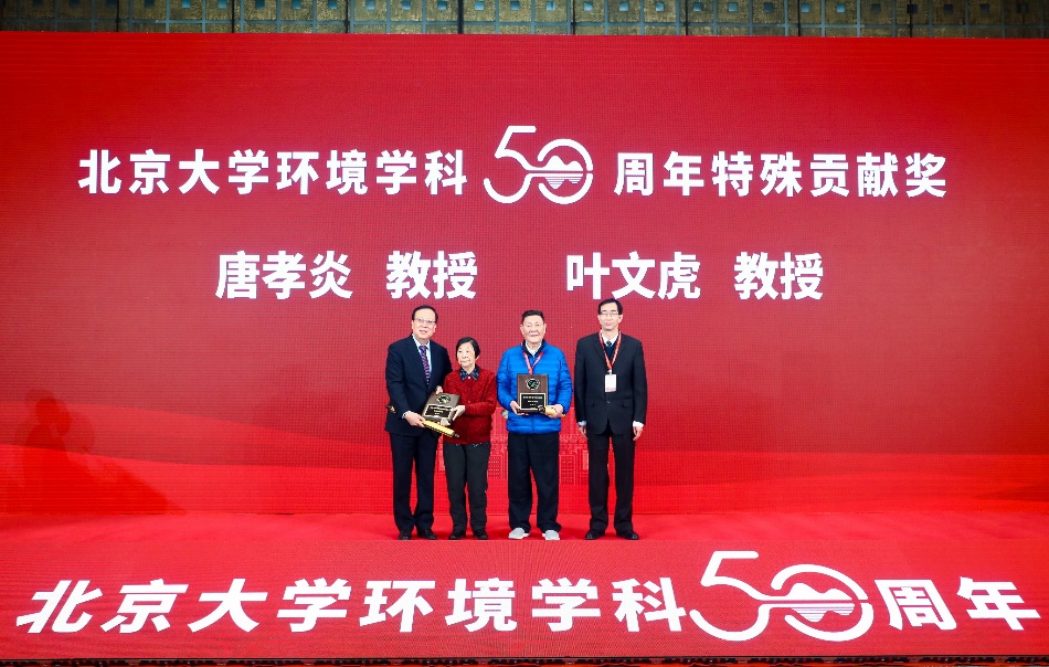 唐孝炎领导开创了我国环境化学领域的系统研究和教学,是我国大气环境化学研究领域最早的开拓者和领军人。叶文虎主持建成了我国第一个环境风洞,开创并推动了我国最早的环境规划与管理方向的研究和学科建设。唐孝炎在发言中向50年前并肩作战、共同建立中国第一个环境化学专业的老师同学表示怀念,向50年来为北大环境学科发展壮大而艰苦奋斗的几代师生和长期以来为环境学科提供指导、支持和合作的领导、兄弟单位表示感谢。